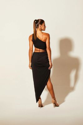 The Violet Dress is designed to captivate and flatter, featuring a stunning one-shoulder design that adds an extra touch of glamour and sensuality. The strategic cutouts enhance your body’s curves, offering an elegant and refined look, while the side slit introduces a bold element to the dress, allowing for a glimpse of the leg. The detailed embellishments provide a sophisticated charm, ensuring you stand out with confidence.